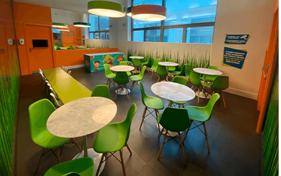 Para os pequenos, com tobogã, piscina de bolinhas e poltronas divertidas.